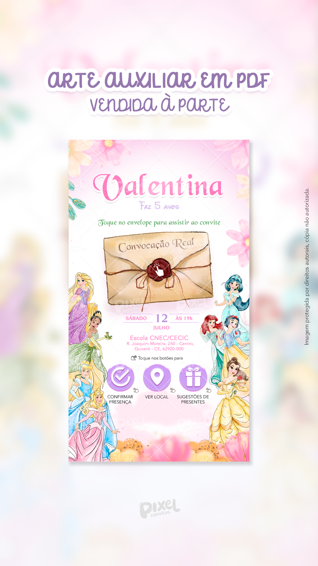 - Posso alterar os textos do convite? Sim, mas apenas os textos das cenas 2 e 4 (opção disponível no formulário).