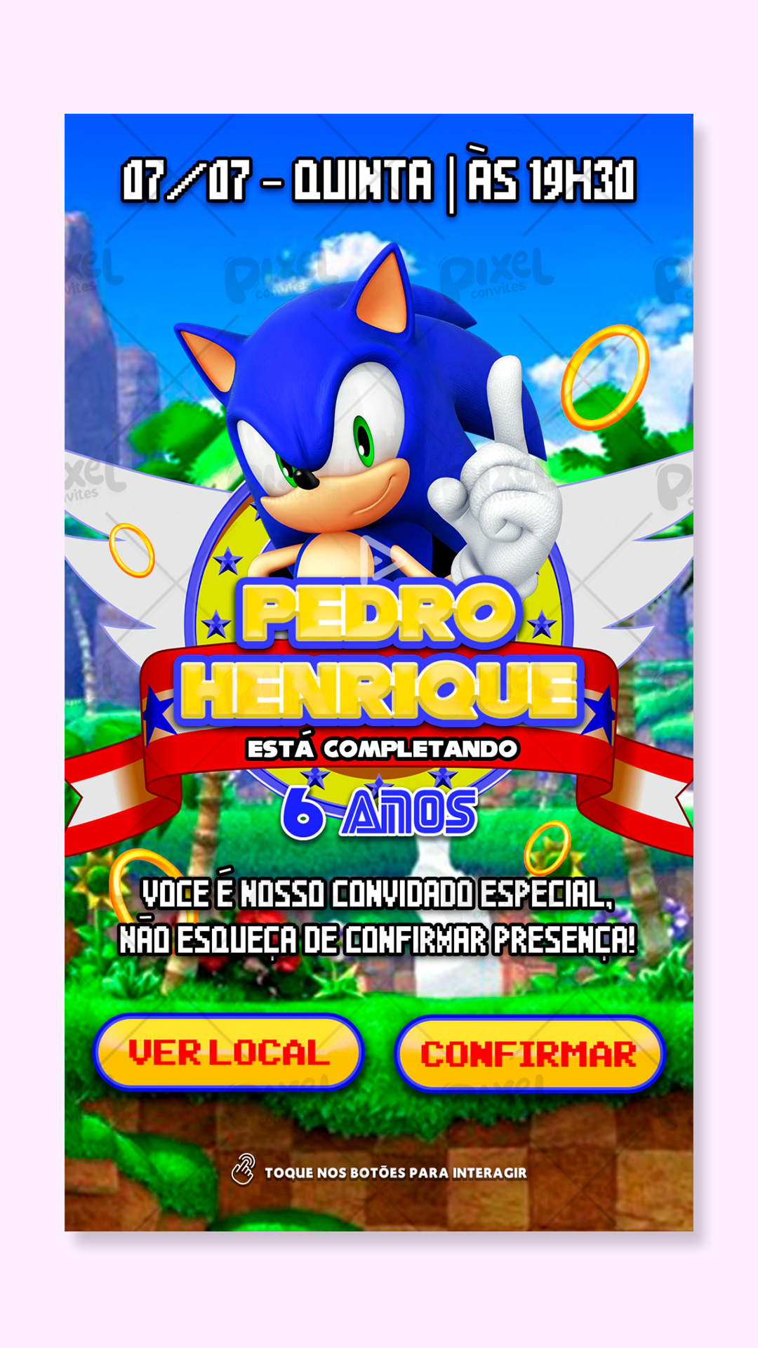 Convite Interativo Sonic The Hedgehog