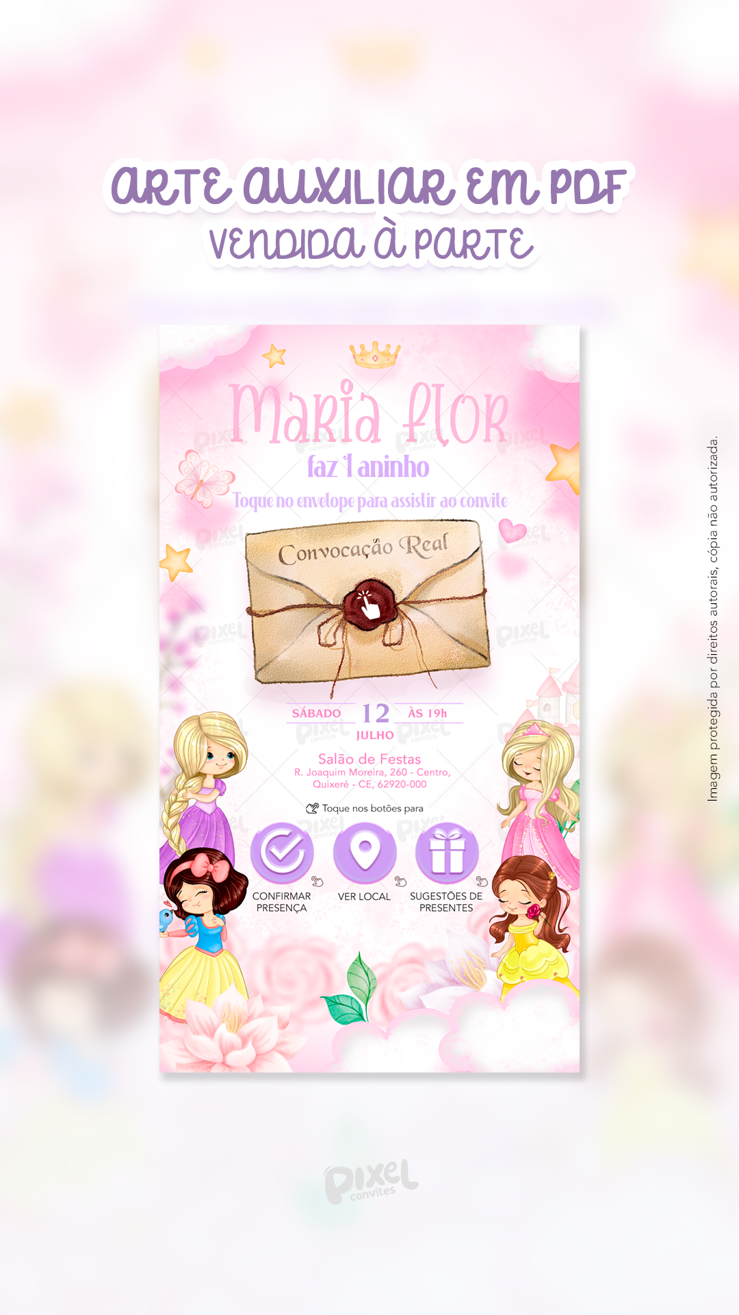 - Posso alterar os textos do convite? Sim, mas apenas os textos das cenas 2 e 4 (opção disponível no formulário).