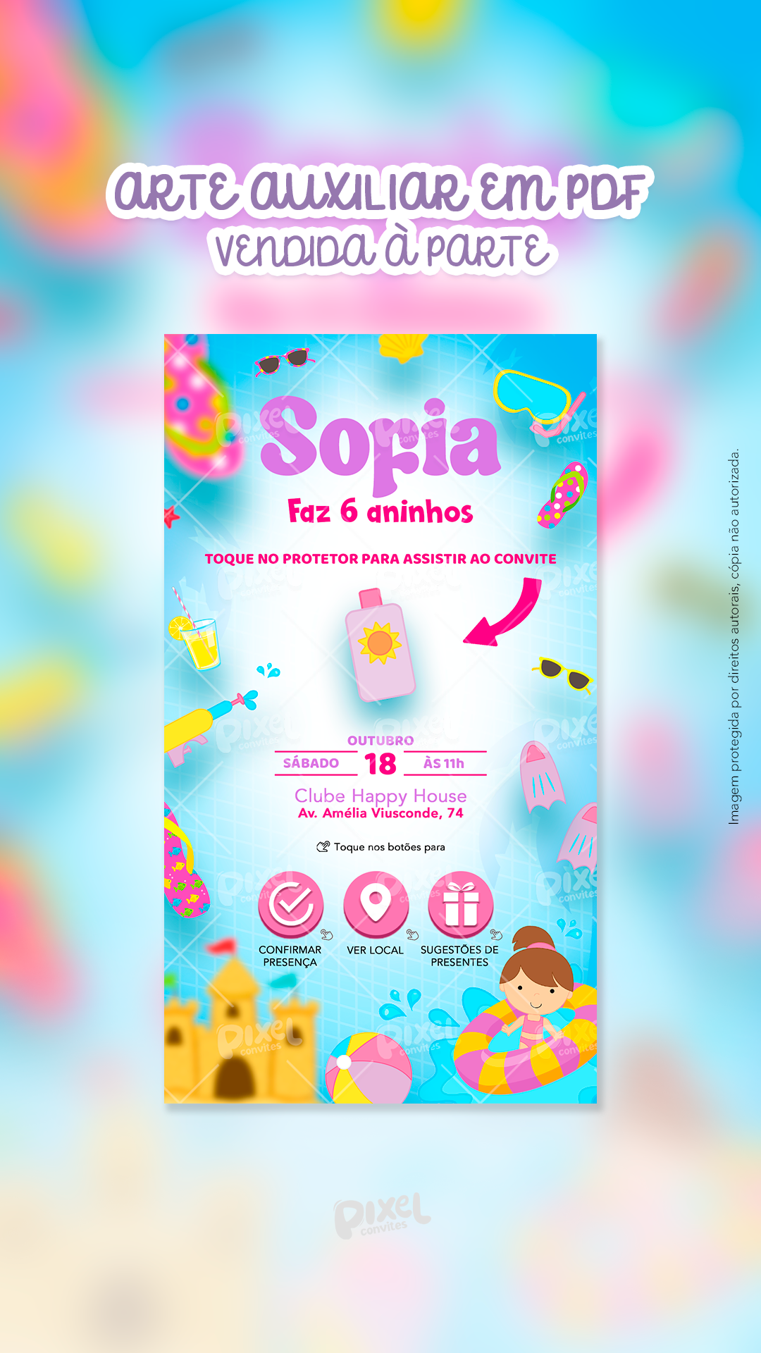 Avalie "Convite Animado Pool Party Festa Na Piscina - Menina"