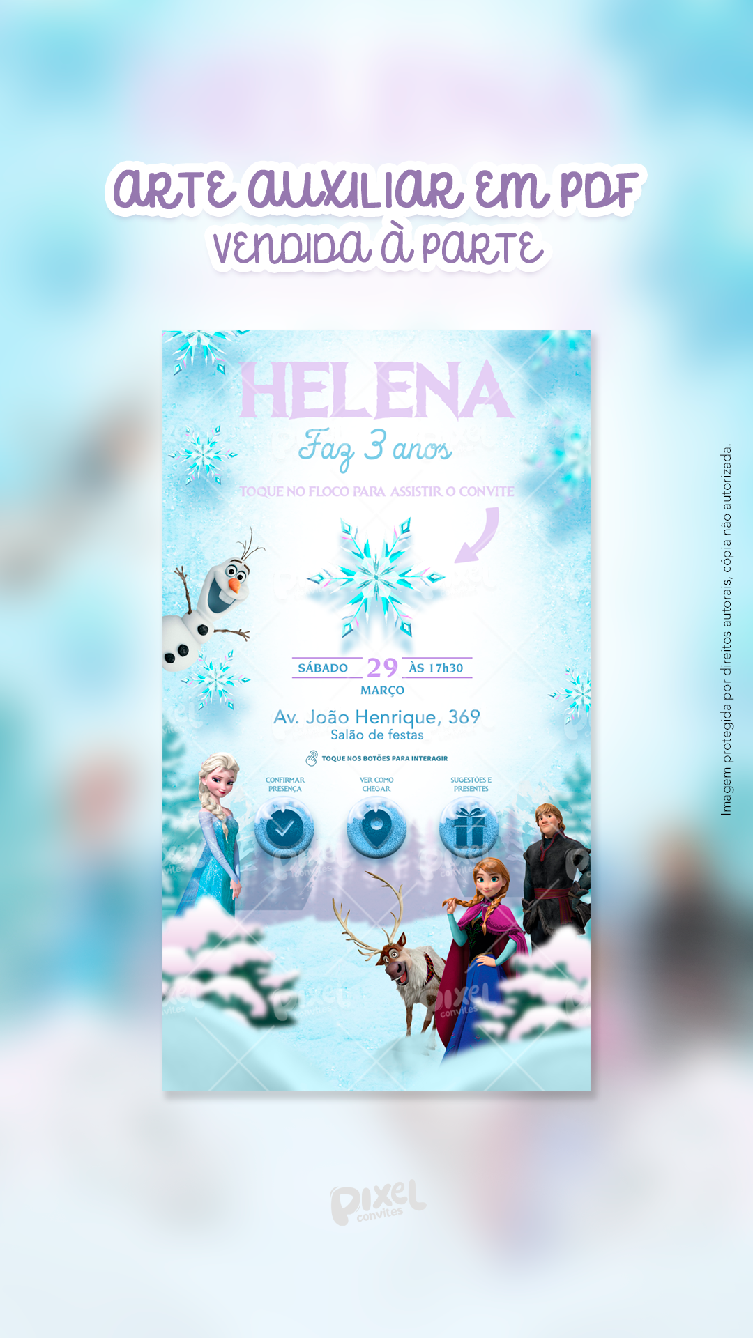- Posso alterar os textos do convite? Sim, mas apenas os textos das cenas 2 e 4 (opção disponível no formulário).