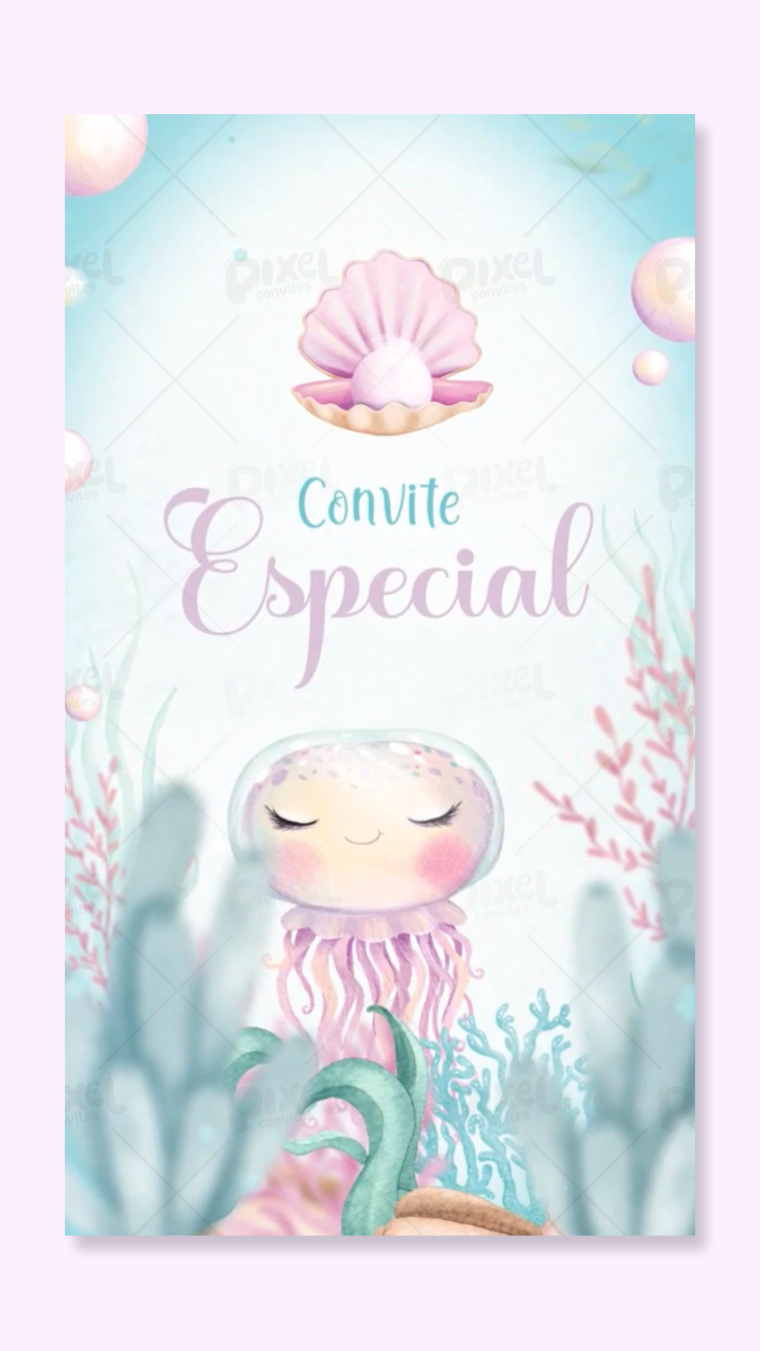 Convite Animado Aventura No Fundo Do Mar - Menina