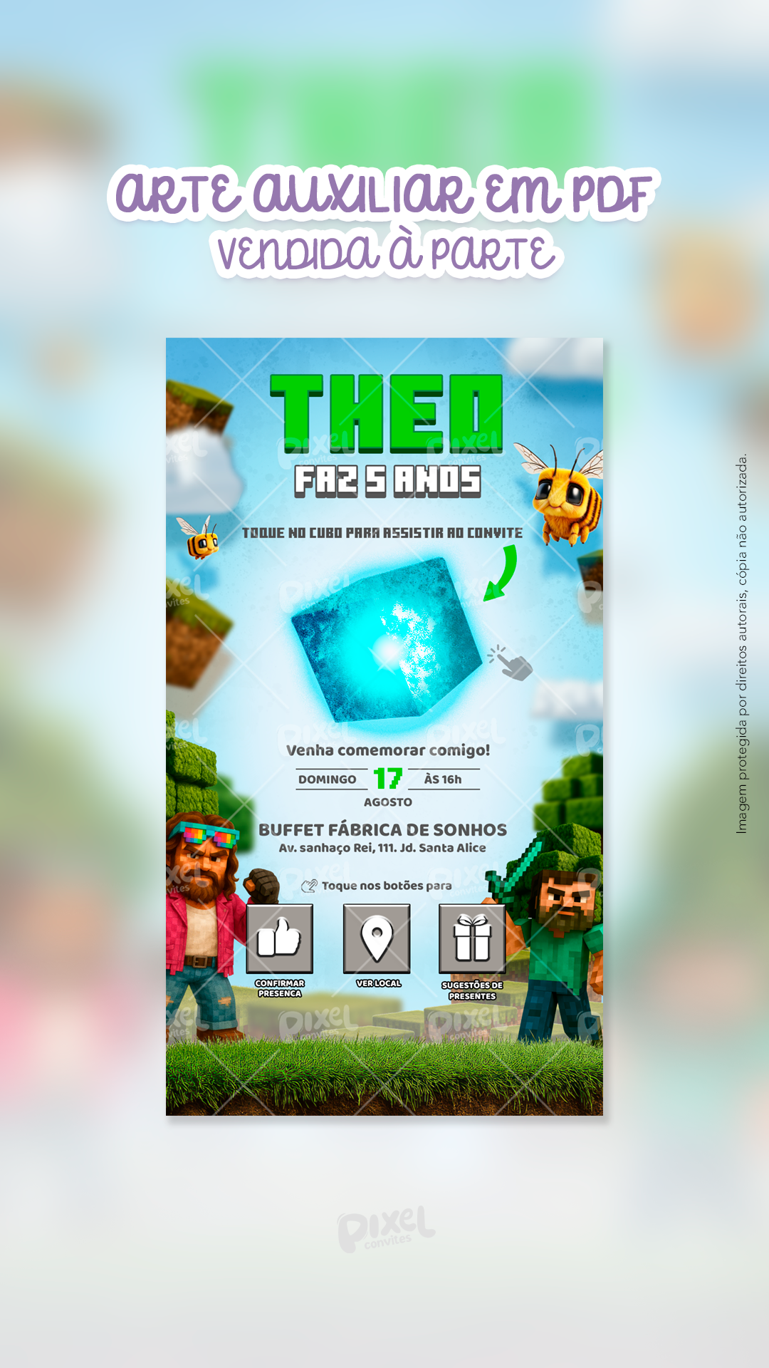 - O vídeo tem botões interativos e/ou sugestões de presentes? Não. Essa opção está disponível apenas na arte auxiliar em PDF.